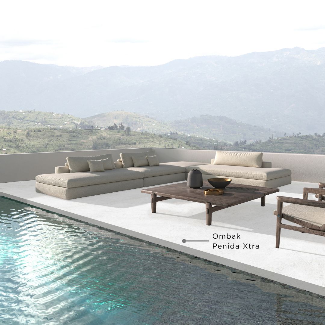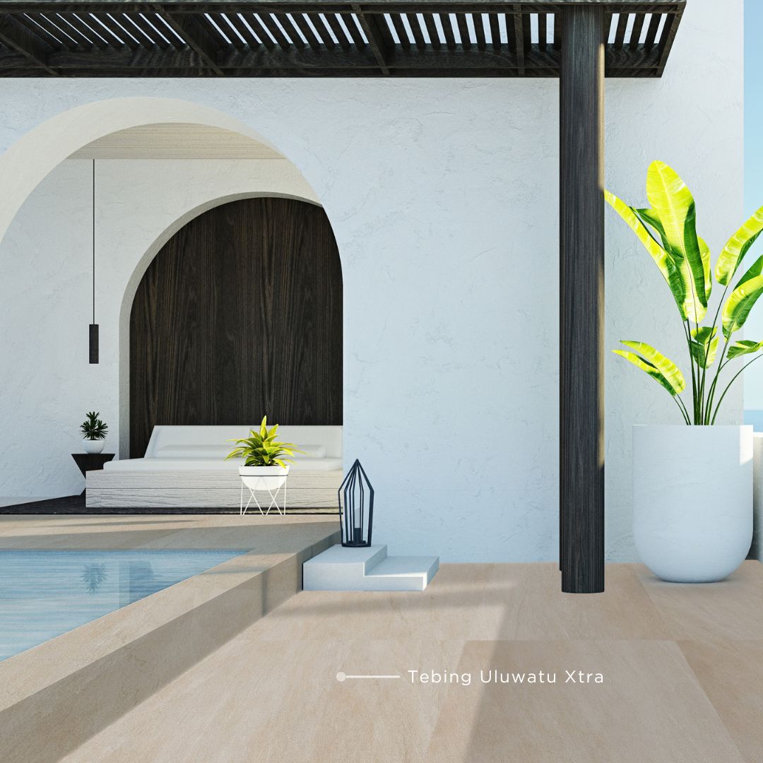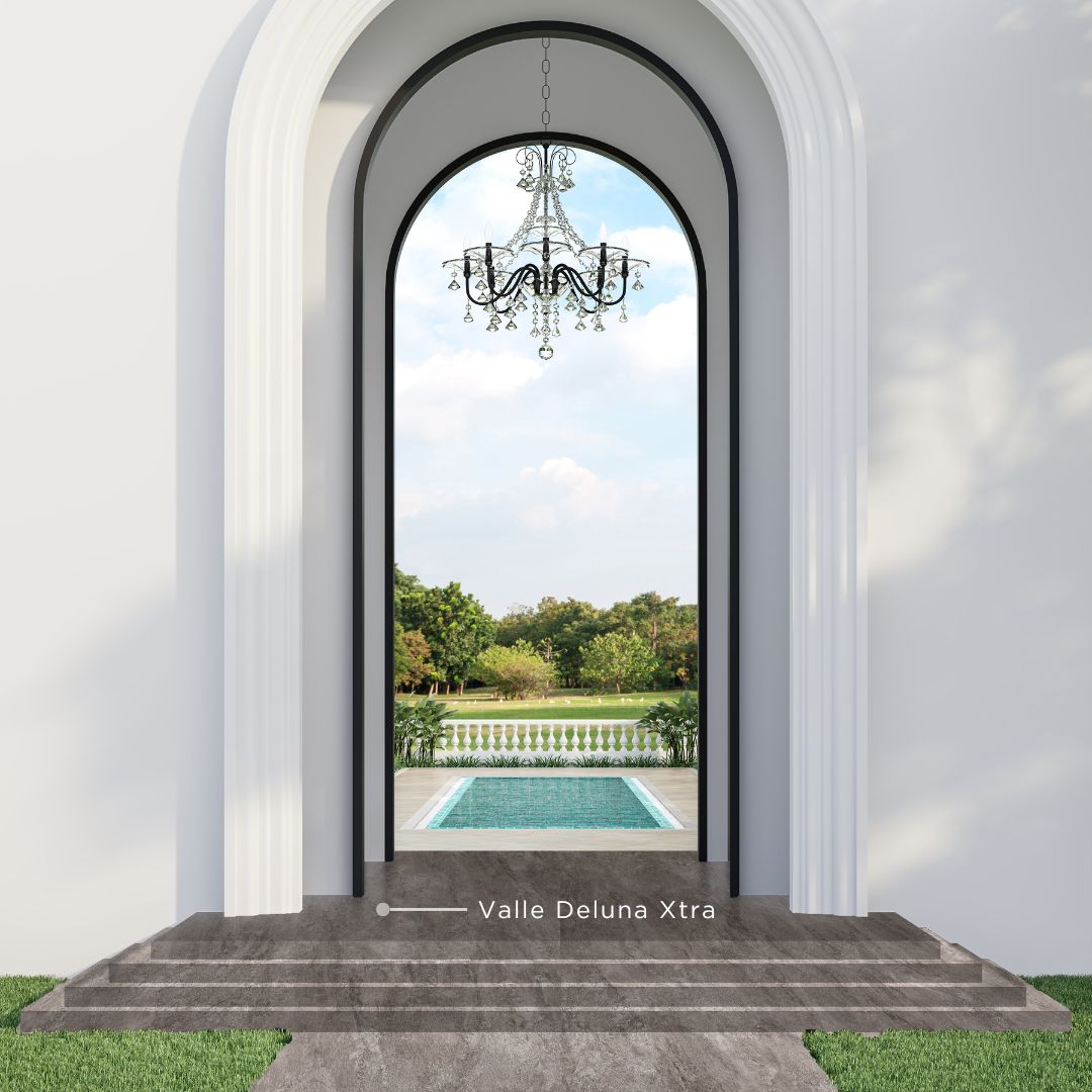 Tambahkan elemen dekoratif seperti lampu kristal, patung, dan tanaman hias yang elegan untuk memperkuat nuansa glamor pada area santai outdoor Anda. Kemewahan motif QUADRA Valle Deluna akan memperkuat kesan elegan pada konsep ini.