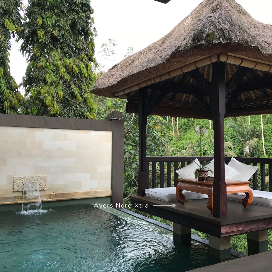 Selain furnitur dan aksesoris, Anda juga bisa menambahkan elemen-elemen seperti gazebo atau bale untuk tempat bersantai yang lebih privat. Keindahan warna QUADRA Ayers Nero akan melengkapi konsep tradisional ini.