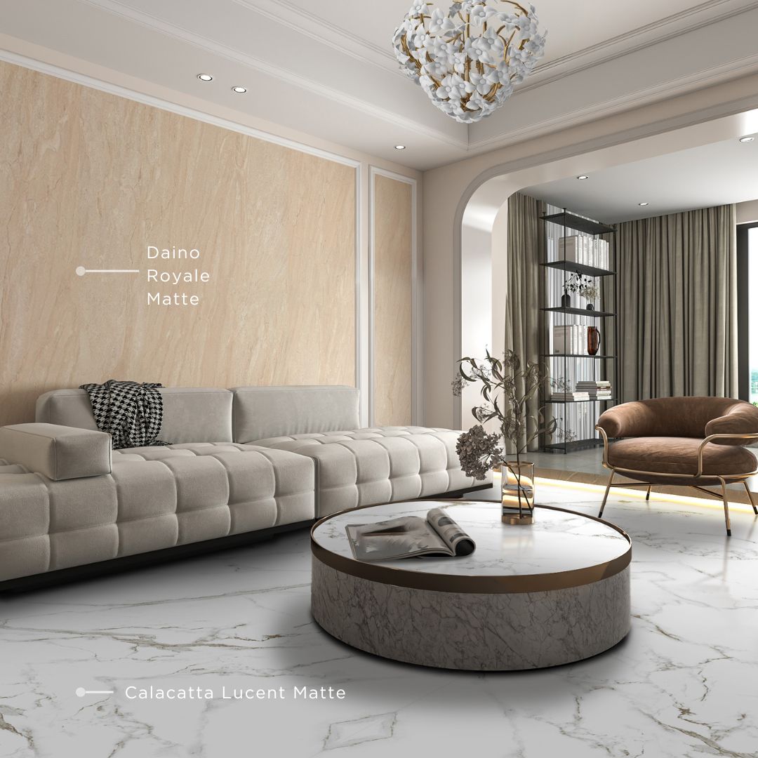 Anda juga dapat menambahkan aksen warna seperti emas, perak, atau tembaga untuk menambah nuansa mewah. Penggunaan warna netral ini dapat Anda aplikasikan pada pemilihan lapisan dinding maupun lantai. Anda dapat menggunakan QUADRA Calacatta Lucent dan QUADRA Daino Royale sebagai lapisan dinding maupun lantai untuk mendapatkan kesan elegan dan mewah.