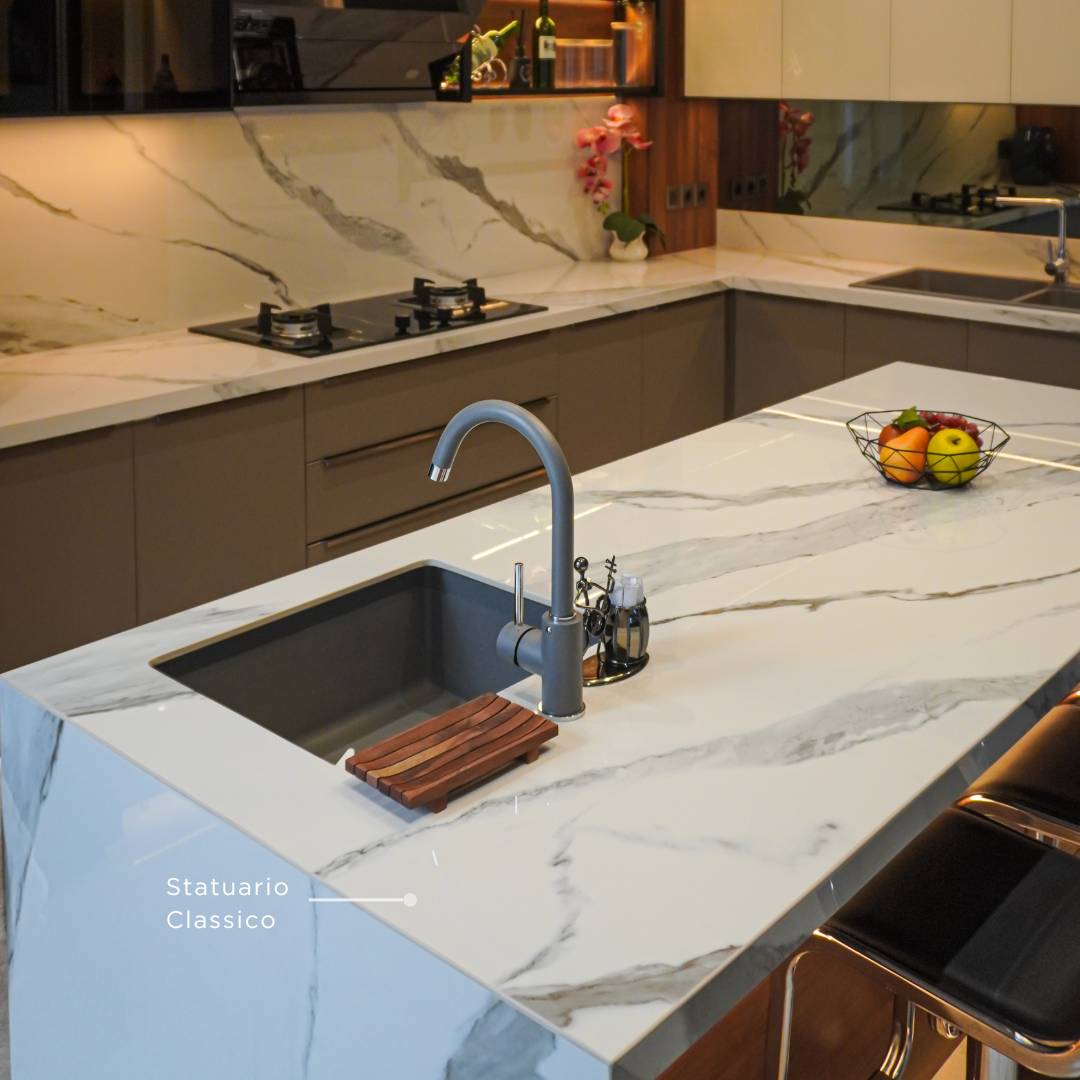 Selain itu, kemampuan QUADRA yang tahan terhadap kelembaban membuatnya lebih tahan lama dan minim kerusakan akibat kelembaban. Tidak hanya itu, QUADRA juga menawarkan ketahanan yang serupa terhadap air dan kotoran. Penggunaan QUADRA juga memberikan keleluasaan dalam desain, karena dapat dipasang secara bookmatch atau endmatch sesuai kebutuhan. Anda dapat menggunakan QUADRA Peltro Marmo Matte sebagai kitchen backsplash yang menakjubkan. Penggunaan QUADRA sebagai dinding dapat menjaga rumah tetap bersih dengan perawatan yang mudah.
