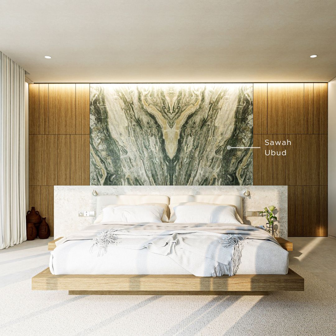 Material lantai, dinding, dan langit-langit merupakan bagian yang paling memengaruhi karakteristik rumah mewah Anda. Untuk mempertahankan nuansa alami Bali, Anda dapat memilih material seperti batu alam, kayu, dan bambu akan memberikan sentuhan tropis yang kuat. Namun, agar rumah terkesan lebih mewah Anda bisa menggunakan material seperti polished marble yang bernuansa Bali pada lantai, backdrop living room, wall, furniture, dan lain-lain. Anda bisa menggunakan QUADRA Sawah Ubud dari Dewata Series yang dapat membawa suasana rumah mewah Anda seperti di Bali.