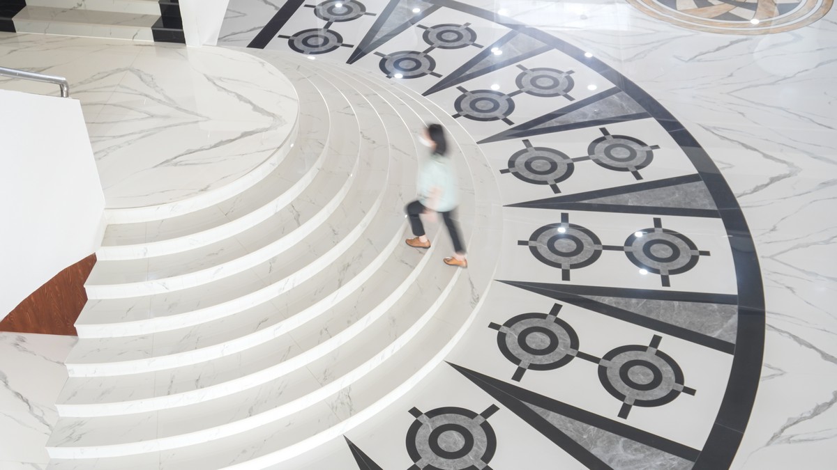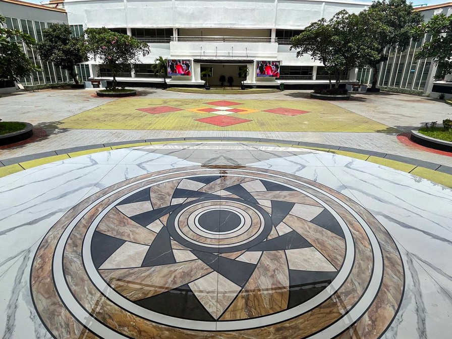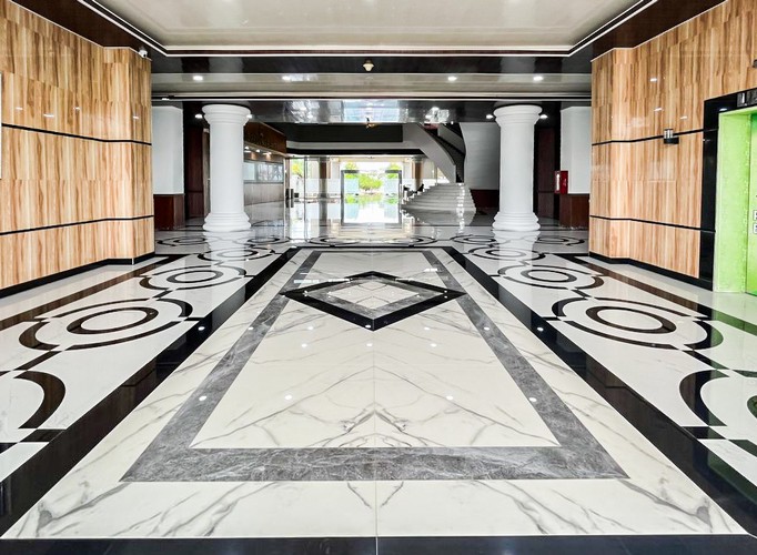 Salah satu aspek yang membuat gedung DPRD terlihat mewah adalah motif lantainya. Motif geometris pada lantai merupakan gabungan dari motif Gobi Bruno dan Statuario Classico dari QUADRA yang didesain menjadi bentuk yang unik dan indah. Perpaduan ini membawa pengunjung ke dalam suasana yang mewah seolah-olah  berada di istana kerajaan ketika melangkah diatasnya. Motif geometris lantai yang dipadukan dengan unsur kayu dan aksen emas pada dinding menciptakan atmosfer hangat sekaligus berkelas saat menyambut tamu yang masuk ke dalamnya.