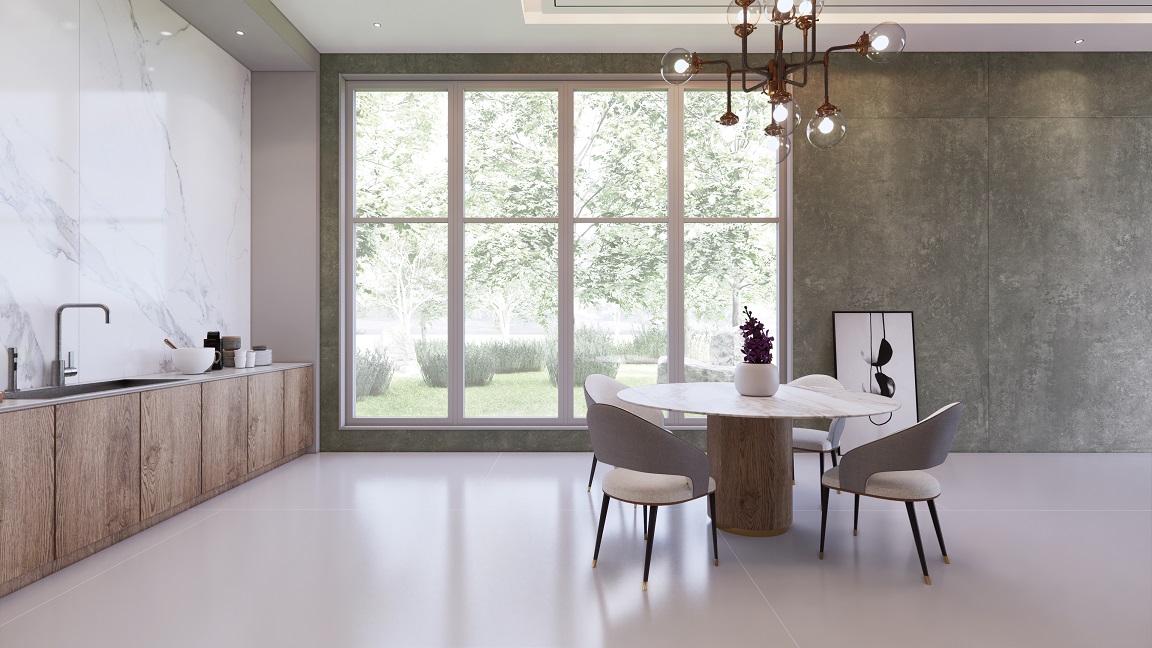 QUADRA memiliki 25 koleksi batu sinter dengan desain yang terinspirasi oleh marmer-marmer alami berwarna putih. Warna dasar putih tersebut akan menciptakan kesan ruang yang bersih dan motif guratan khas marmer akan memberikan sentuhan elegan. Tentu saja ruang tersebut tidak lengkap tanpa furnitur.