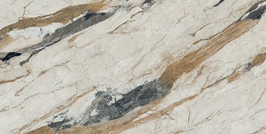 The design possibilities of using striking book-match effects of sintered stone slabs with veined patterning, such as those found in marble or other stones, are particularly noteworthy. The challenge in acquiring true matching panels to install when utilizing natural stone for those purposes is due to the randomness of the veining. Since the sintered stone panels are manufactured, however, the veining and patterns can be very precisely controlled to achieve very dramatic and artistic looks.